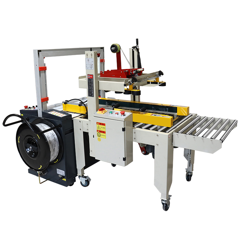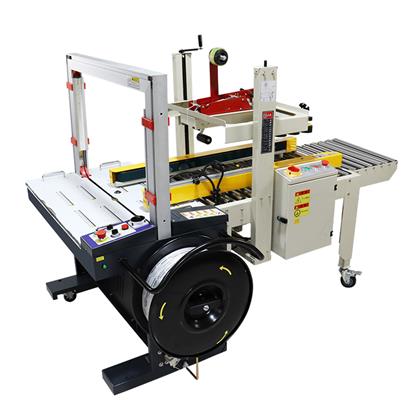 封箱打包一體機是一款集封箱、打包為一體的自動化設備。由全自動打包機和封箱機組成,該機采用將封箱機皮帶加長的原理,用封箱機的驅動皮帶將物品輸送到打包機的臺面上,既解決了客戶封箱打包整體作業的需求,同時大大為客戶節省了生產成本,是一款經濟實用的自動化包裝設備主要適用于紙箱包裝經濟快速,容易調整,可一次完成上下封箱動作,,也可以與流水線配套使用,廣泛應用在家用電器、紡織、食品、百貨、醫藥、化工等行業。