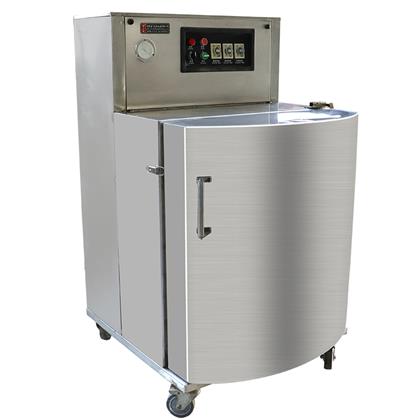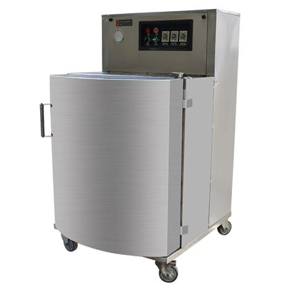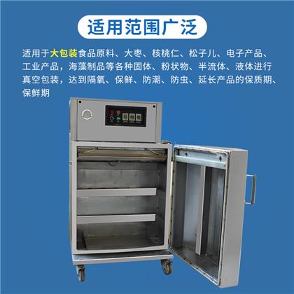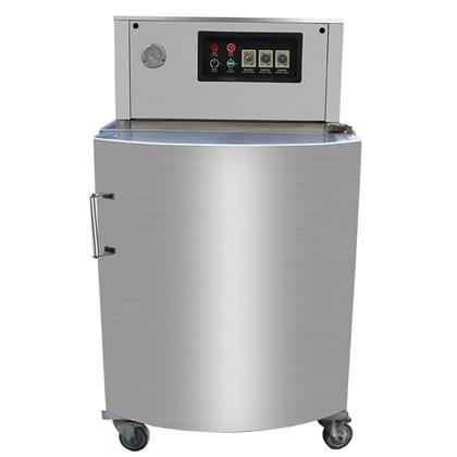 立柜式真空包裝機采用優良不銹鋼材料結構,主要用于粉末、顆粒、半流體或大包裝物體的真空包裝。該機型真空室容積大,袋口立封形式??蛇B同產品外包裝(如:箱、桶、盒)。直接擱置于真空室內,抽真空,封口,冷卻,放氣,全過程均可自動控制及完成。開門式的操作形式,便于重物擱置。(該型機可根據用戶特殊尺寸、配置要求定做)。